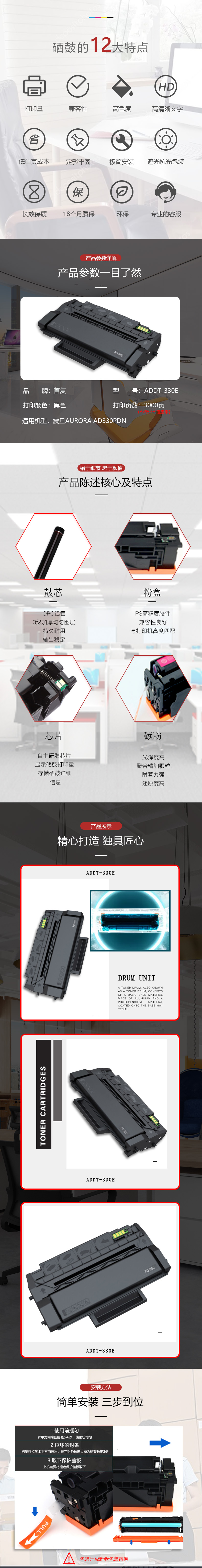 | 产品名称 : | 首复 ADDT-330E 适用震旦ADDT-330E硒鼓AURORA AD330PDN打印机 |