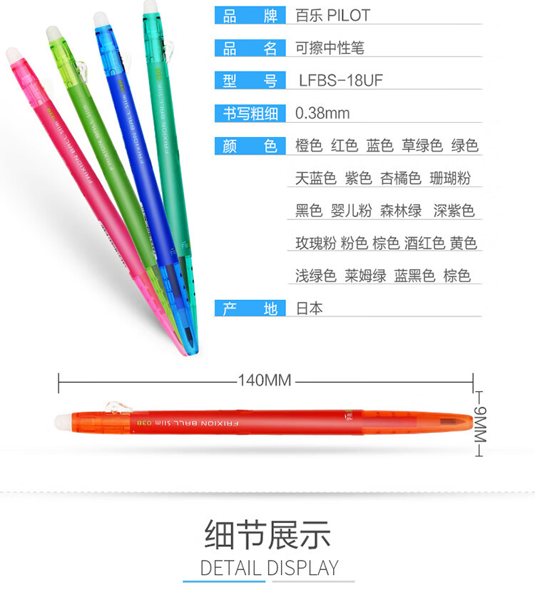 | 产品名称 : | 日本百乐(PILOT)摩磨擦子弹头按动可擦笔可擦中性笔 黑色 0.38mm 10支装 LFBS-18UF原装进口 |