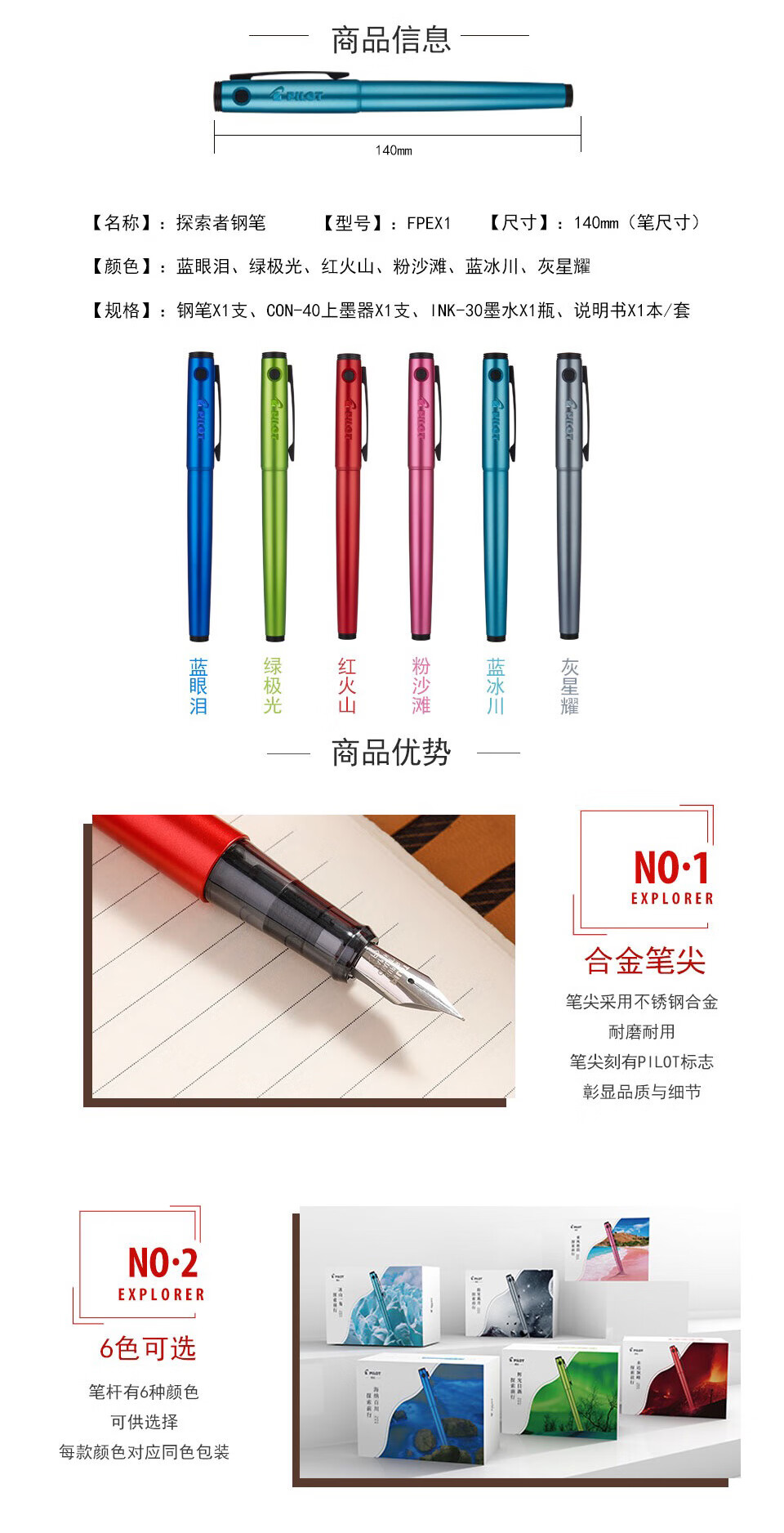 | 产品名称 : | 日本百乐(PILOT)钢笔墨水套装explorer系列探索者奇观礼盒礼品笔男女送朋友 M尖蓝眼泪FPEX1MML原装进口 |