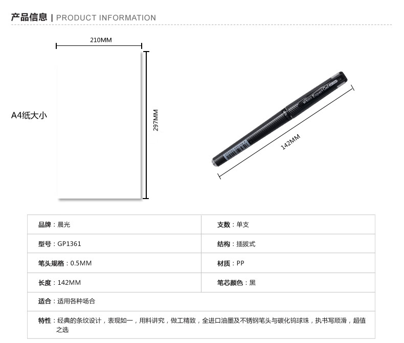 | 产品名称 : | 晨光文具大笔画中性笔0.7mm 子弹头办公粗笔画签字笔简约GP1361黑色 |