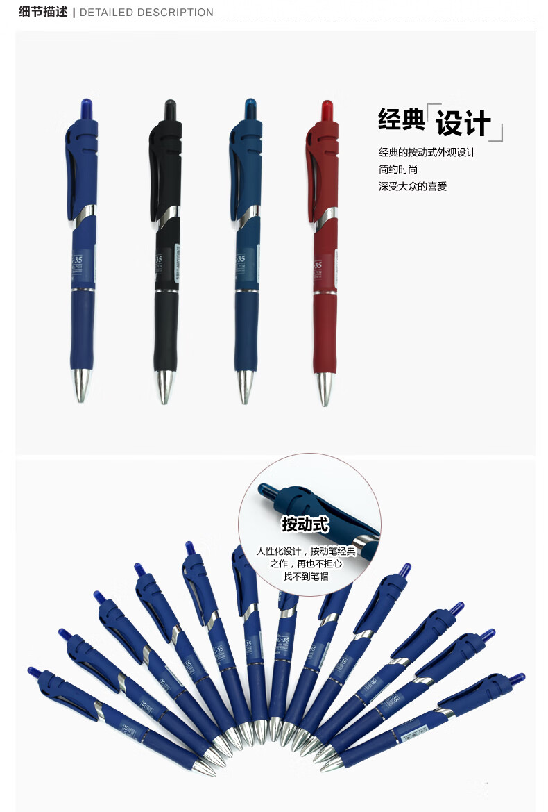 | 产品名称 : | 晨光(M&G)文具0.5mm蓝色中性笔 按动子弹头签字笔 商务办公水笔 12支/盒AGPK3507 |