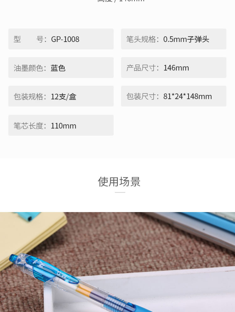 | 产品名称 : | 晨光(M&G)文具GP1008/0.5mm蓝色中性笔 经典按动子弹头签字笔 办公水笔 12支/盒 |