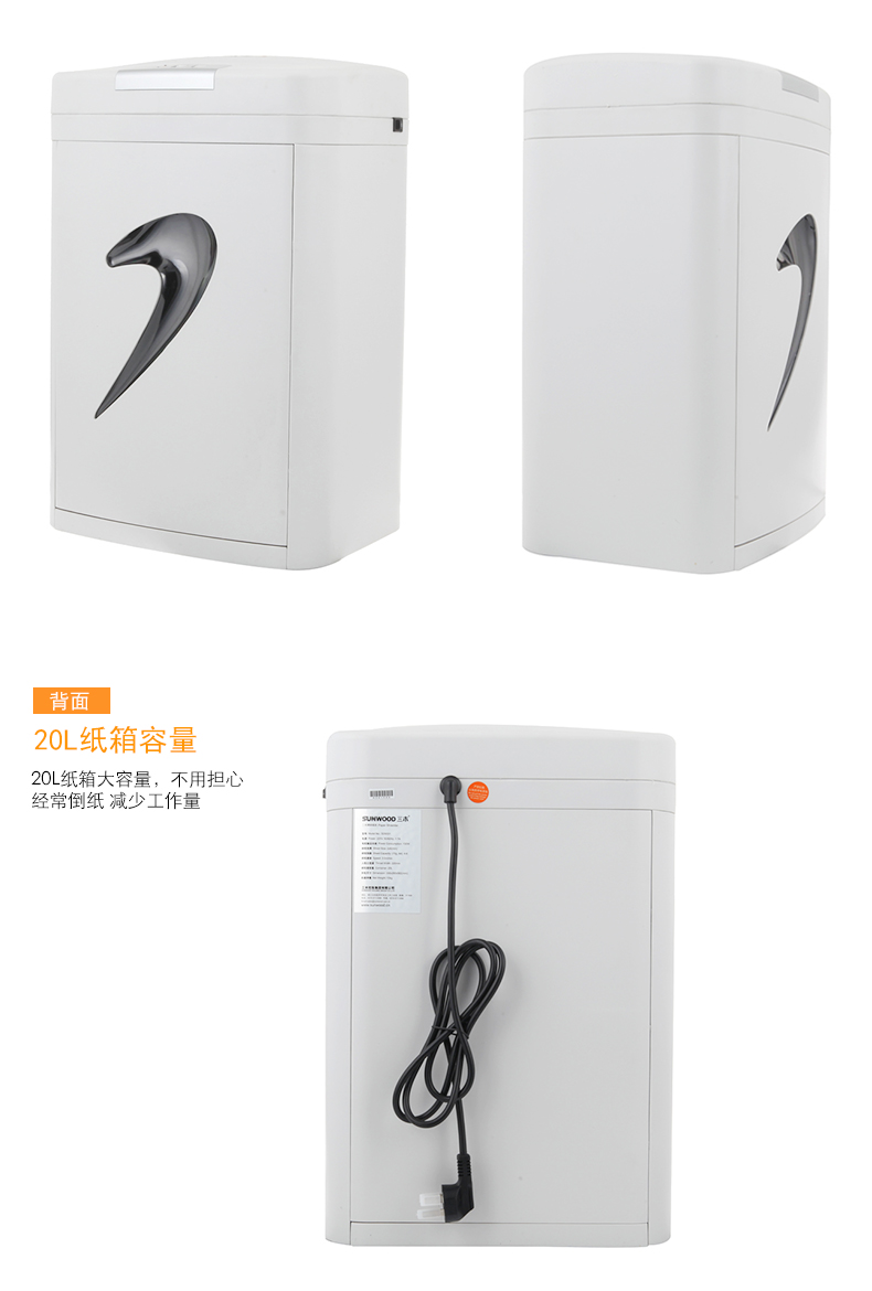 | 产品名称 : | 三木(SUNWOOD) SD9331碎纸机白色2*6mm 办公静音 电动粉粹机 |