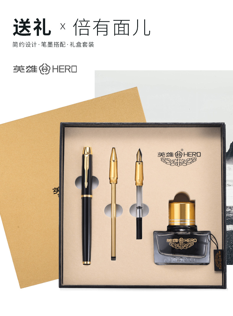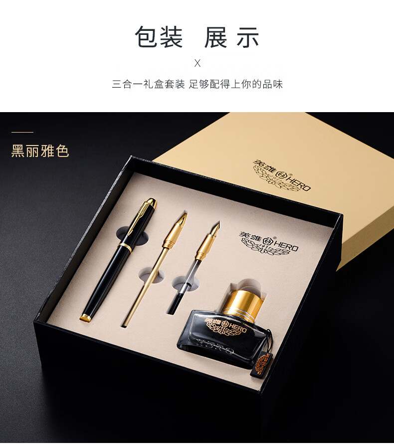 | 产品名称 : | 英雄(HERO)钢笔/签字笔 1801黑丽雅IM金属杆 铱金钢笔/墨水笔/宝珠笔 三合一 吉祥如意 文具套装 |