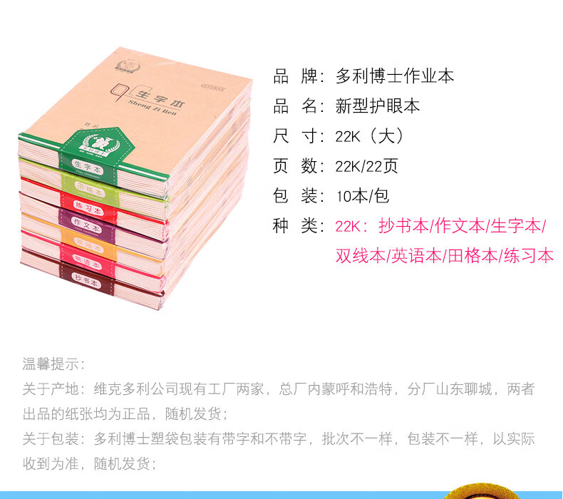 | 产品名称 : | 多利博士 护眼本小学生中号生字本22开大田格 英语 练习 22页 多利22K(田格本)10本 |