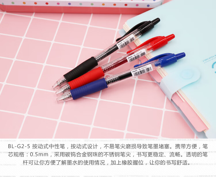 | 产品名称 : | 百乐(PILOT)BL-G2-5-B 中性笔子弹头啫喱笔签字笔 黑色 0.5mm 单支 |