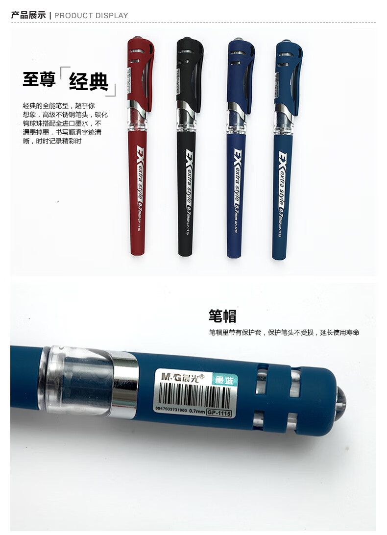 | 产品名称 : | 晨光(M&G)文具0.7mm蓝色中性笔 经典子弹头签字笔 办公水笔 12支/1盒GP1115 |