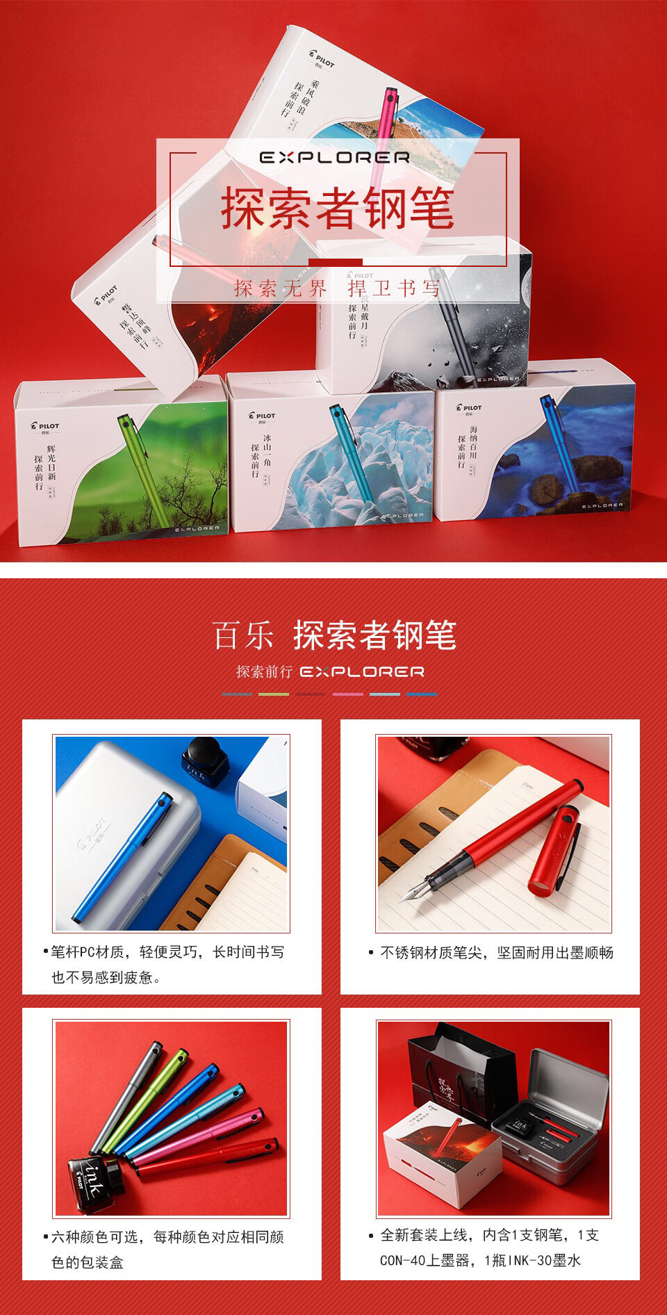 | 产品名称 : | 日本百乐(PILOT)钢笔墨水套装explorer系列探索者奇观礼盒礼品笔男女送朋友 F尖灰星耀FPEX1FMGY原装进口 |