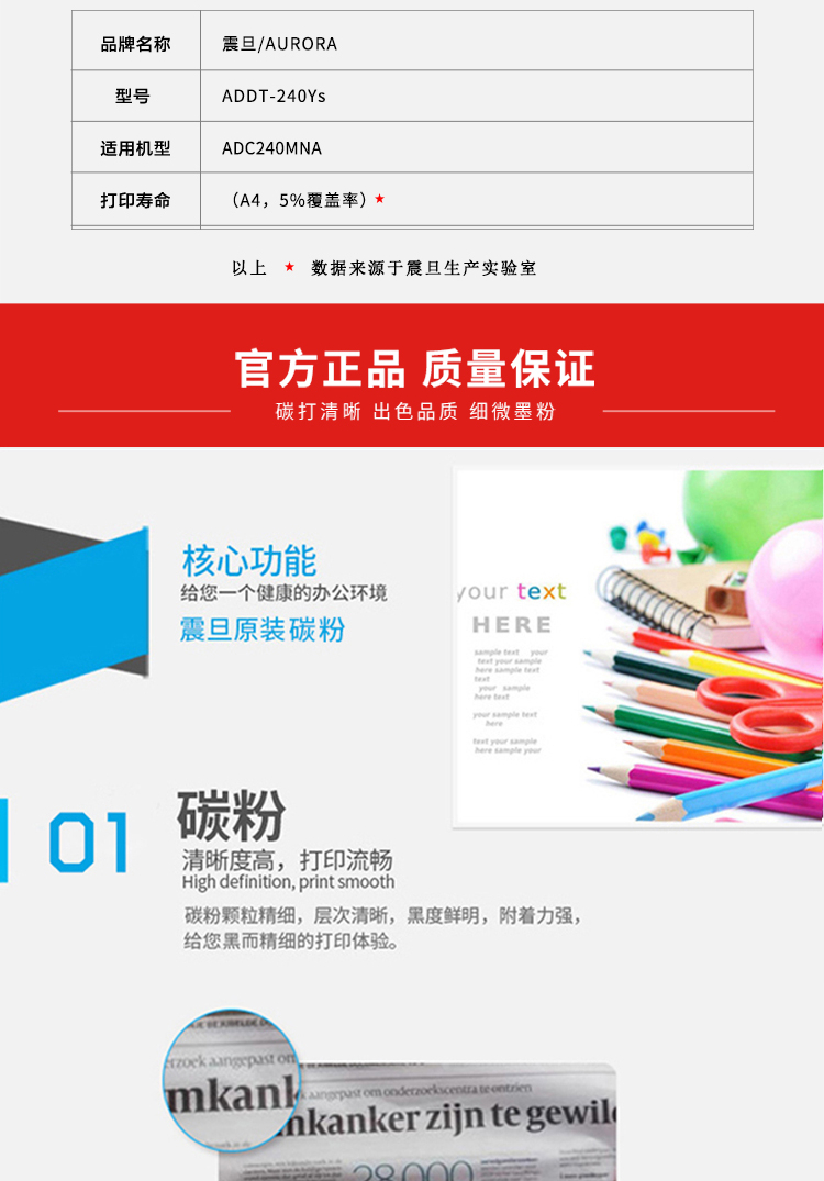 | 产品名称 : | 震旦(AURORA)ADDT-240YS 标容黄色墨粉(适用于ADC240MNA)约1300页 |