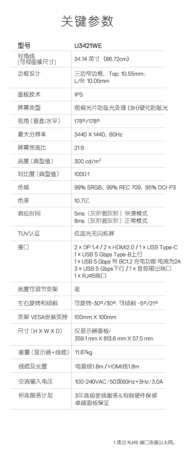 | 产品名称 : | 戴尔(DELL)34英寸 WQHD分辨率 IPS 带鱼屏 Type-C 90W反向充电 内置音箱 低蓝光 1900R 电脑显示器 U3421WE |