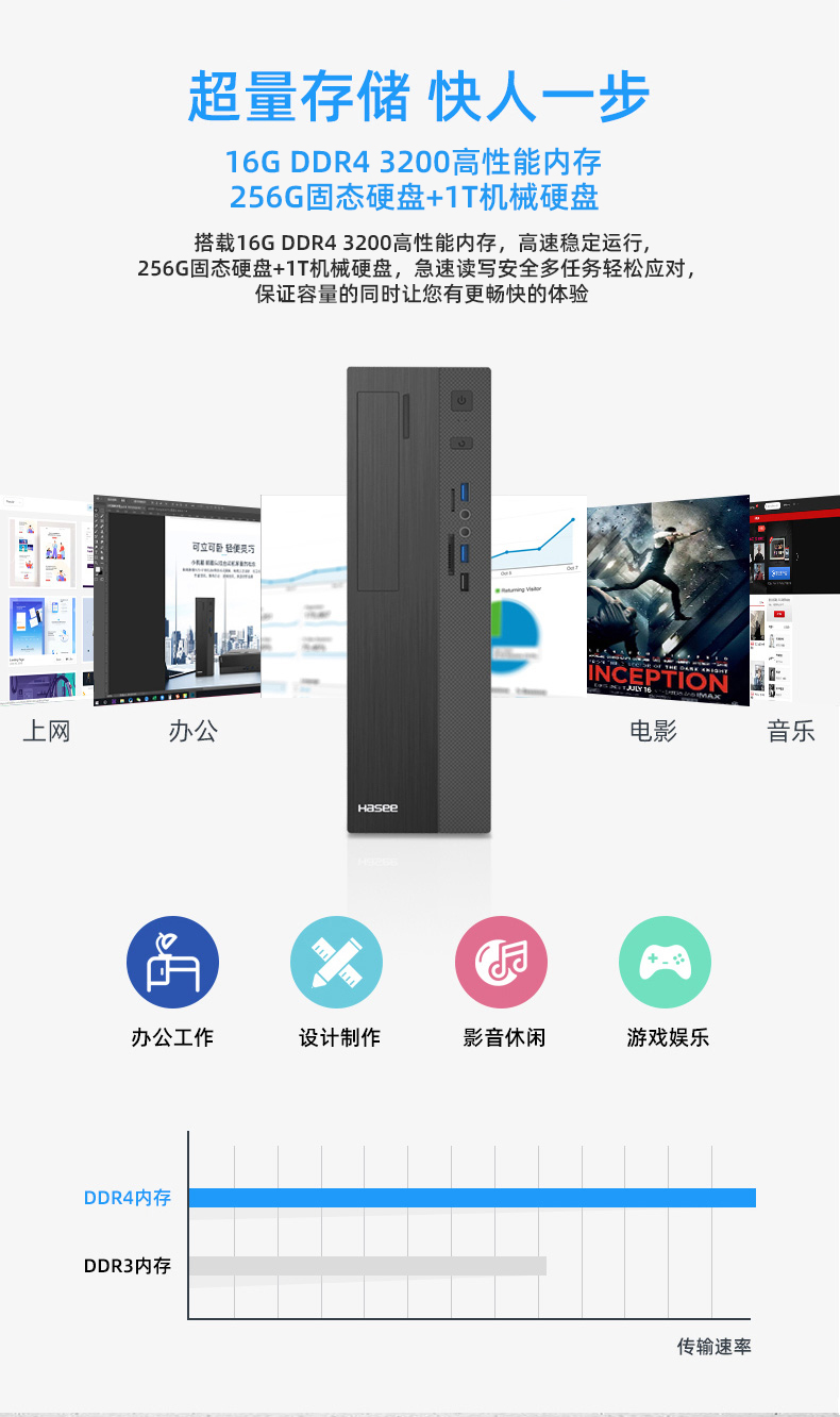 | 产品名称 : | 神舟(HASEE)新瑞X50酷睿十二代商用办公台式电脑主机 (i5-12400 16G 256G+1T win11键鼠) |